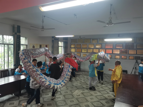 | 罗德书在教室里指导孩子们舞龙 |
