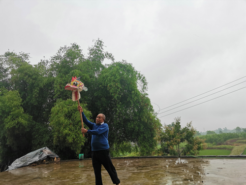 “就地取材,竹条结实、有韧劲。”罗德书说,纯手工制作为每一条雨坛彩龙赋予了生命。话话间,罗德书手执一个龙头,在院坝内舞动起来,天空中的雨越来越大,让雨坛舞龙祈雨习俗更加神秘起来。