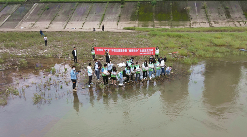 与此同时,在合江县城滨江路的长江边,来自四川三河职业学院的“绿芽”志愿者正将8400余尾中华倒刺鲃放入长江。
