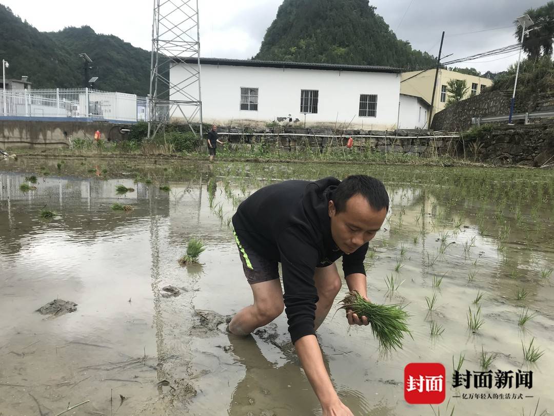 5月17日,四川省古蔺县龙升村下着蒙蒙细雨,西南医科大学附属中医医院派往该村的第一书记冯跃平在走访过程中,看到70多岁的老农高在全正在田里插秧。