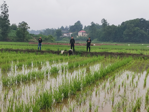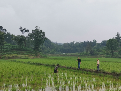 | 驻村工作队察看水稻制种基地水稻长势 |