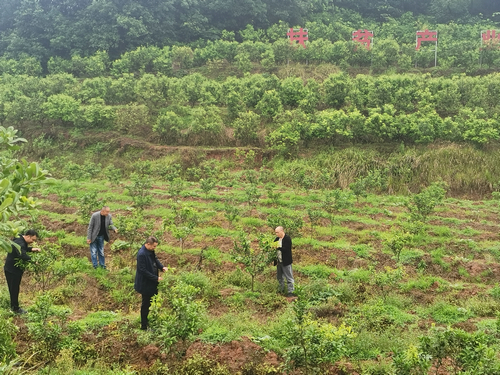 | 驻村工作队在扶贫产业园察看柑橘长势 |