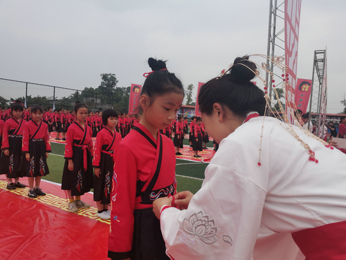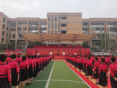四川新闻网消息(淦代熙 摄影曾佐然 记者程海英)“沐浴阳光十载,欣逢伟大时代。褪去懵懂稚嫩,渐成翩翩少年。”泸县城东小学校“花开十岁,放飞梦想”四年级汉式成长礼活动伴随着气势磅礴的鼓声正式开场。