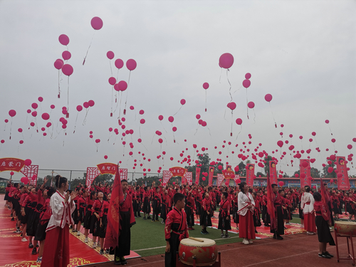 有志方有向,有愿才有行。众学子在心愿卡写下今日成长的愿望,在蓝天的见证下,在师长的祝福中,孩子们高举手中的气球,欢呼到:“我们十岁啦!成长快乐!”,紧接着放飞了载着自己心愿卡的气球! 红红的氢气球带着孩子们的心愿飞向天空,飞过云霄。