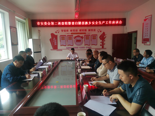 在实地走访结束后,巡查组一行召开座谈会,听取了白腊苗族乡安全生产、森林防灭火等工作汇报,同时查看党政领导履职情况资料,巡查组对白腊苗族乡安全生产及森林防灭火工作开展情况给予充分肯定并提出了宝贵意见。