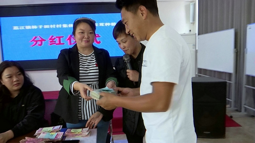走进合江县柿子田村润泽果业专业合作社,“村集体经济分红仪式”的标语格外醒目,镇、村干部,参与分红的村民欢聚一堂。主席台桌子上整齐地摆放着一沓沓崭新的人民币,每个村民脸上都挂着笑容。