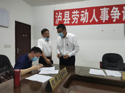 | 泸县劳动人事争议仲裁院流动仲裁庭庭审现场 |