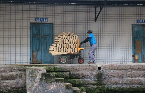 | 工人们开始了一天忙碌的制曲工作 |