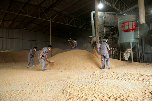 生产车间内,筛选过的优质小麦经过机器除杂润粮后进入粉碎环节,接着加入酵母和水进行搅拌,待充分湿润后输送到曲坯制作车间。