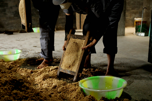 | 人工踩曲制作曲坯 |