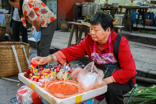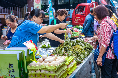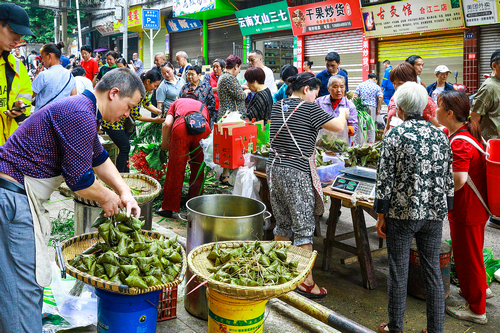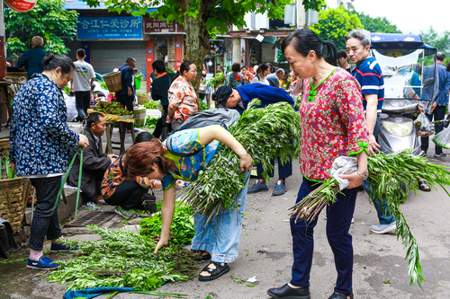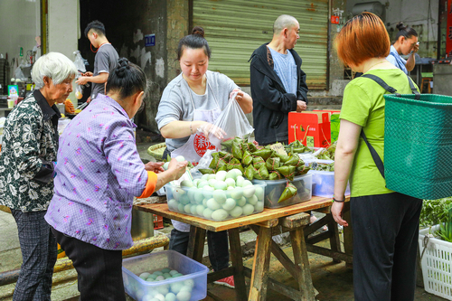 四川新闻网消息(李贵平 记者程海英)6月3日端午一大早,四川省泸州市合江县百花亭农贸市场已是人头攒动,人声鼎沸。在这一天颇受人们喜爱的粽子、菖蒲、艾叶、雄黄酒、香囊和各式沐浴药草应有尽有,交易异常火爆。