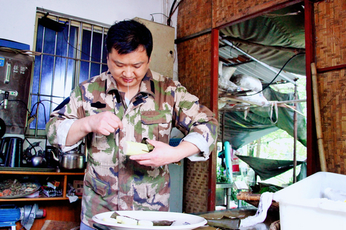 连日来,在古家鱼塘农家乐里,老板古从军夫妻俩一直在忙着制作长粽。从烧碱、泡米、摘叶,到滚筒、包裹、清煮……十几道工序下来,这原汁原味的农家菜也就新鲜出炉了。