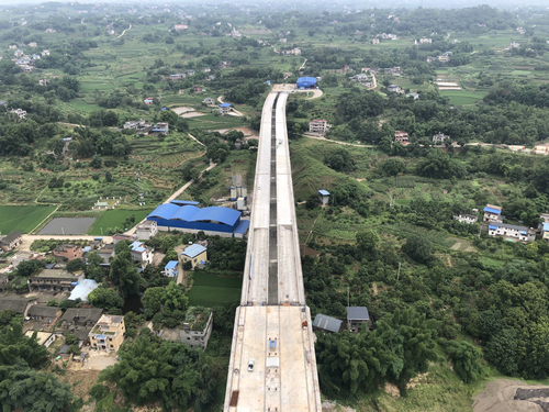 泸州市白沙长江大桥北岸主塔作为全桥控制性工程,高162.83米,相当于54层楼高。本次浇筑区域为弧形塔冠部分,浇筑时长为4个小时,该部分浇筑完成标志着北岸主塔顺利封顶。