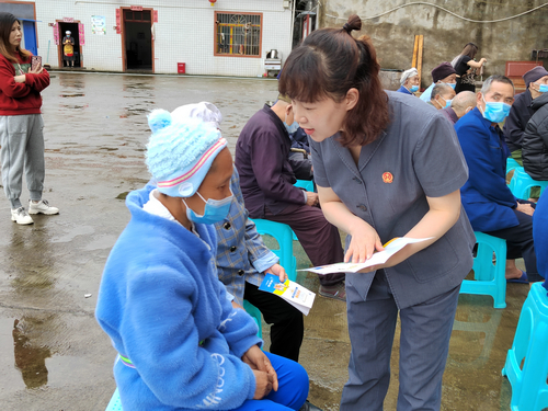 “嬢嬢,千万要警惕免费赠送的骗局,一些骗子打起销售保健品的幌子,免费发鸡蛋、水果,忽悠老人们去听课,成功洗脑后,就让老人买他的高价却又毫无用处的保健品。”法官何雪向一位老奶奶详细地说着。