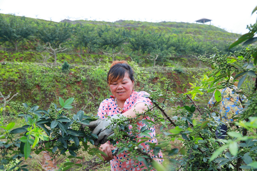 四川新闻网消息(张琳 黄建伟 王一涵 杜明珉 记者程海英)眼下正值花椒成熟的季节,椒农们也到了一年中最为忙碌的时候,在合江县白沙镇花椒现代农业园区,椒农们正忙着采摘,丰硕的果实让他们脸上洋溢起幸福的笑容。
