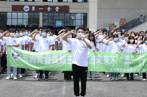 在第35个国际禁毒日即将到来之际,当日,龙马潭区禁毒委员会办公室联合江阳城建职业学院,开展“我的青春我做主,我的未来不‘毒’行”禁毒快闪打卡宣传教育活动,旨在向同学们普及禁毒知识,提高禁毒意识。