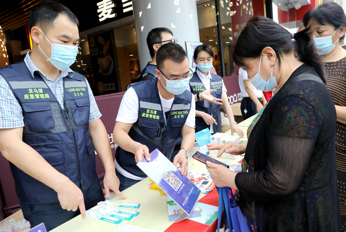 | 宣传人员向民众普及日常生活中的消防安全常识 |