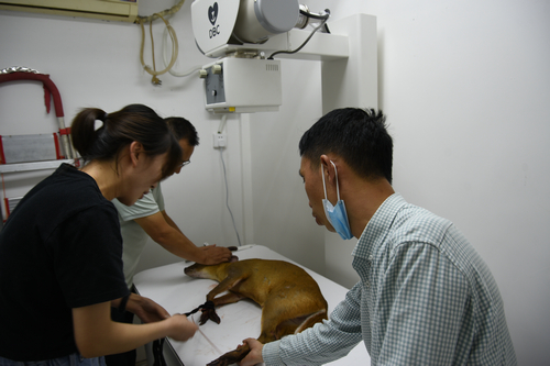近日,古蔺县观文派出所接到热心村民电话,称在观文镇永安村六组森林里发现一只受伤被困的不明野生动物,需要观文派出所处警救助。接警后,民警立即前往事发地点。到达现场后,发现该动物为野生动物麂子,该麂子受伤后被困住无法动弹,蜷缩在一处灌木丛中,民警初步检查,发现该动物有明显外伤,不具备放生条件,民警们小心翼翼地将这只野生动物带回所内,及时向所领导汇报救助情况,并立即联系了自然资源站动物保护部门工作人员,在古蔺县野生动物救助点,对其进行救治。