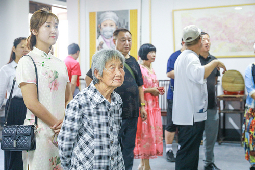 在展出现场,来自合江县尧坝镇白村80高龄的老太婆李关富特别引人注目,她是合江画院在尧坝镇开办美术培训班时主动报名要求参学的学员之一,观展结束后,她也同美术家们一起在尧坝古镇进行写生练习。
