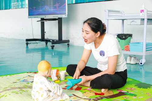 | 来自合江县人民医院的选手胡霞,在参加育婴项目比赛中与小孩一起做游戏互动。 |