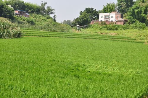 “现在是杂交水稻制种的始穗期,施药有利于解除穗部包颈,使得水稻制种抽穗更加完全。今年我们镇的制种面积有0.65万亩,无人机施药90%以上。”太伏镇农业推广服务中心负责人张世全说。