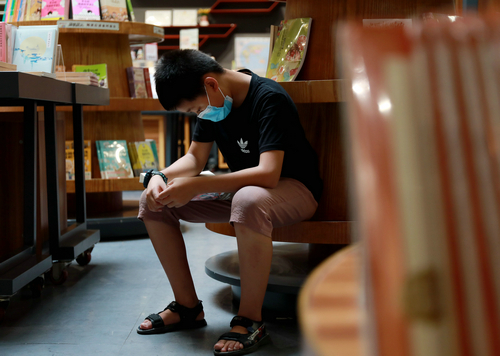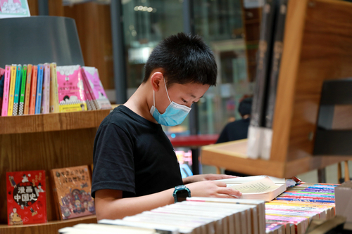 “我对中国的历史很感兴趣,但又不太了解,书店里面书籍种类比较多,我就到书店看历史类的书籍再把它摘抄下来”。5年级的学生田涵丞左手按着书,右手拿着笔正认真做笔记。他说,上学期间作业比较多,没有时间看课外书,就趁着这个长长的暑假来书店学习。