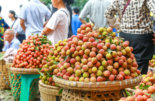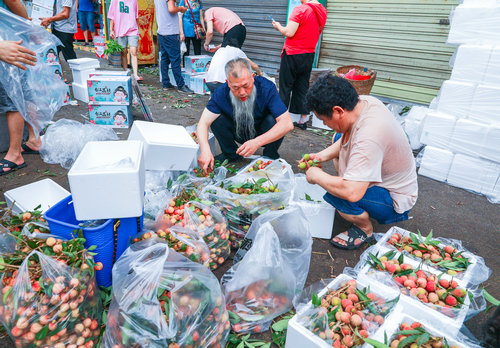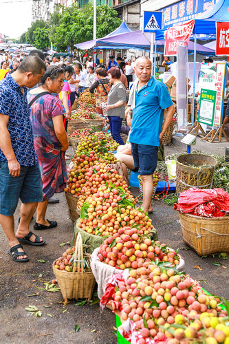 | 2022年7月17日,合江县马街荔枝交易市场上,最受消费者喜爱的黛绿荔枝是经济价值最高的品种之一,也是合江县大力引导农民广泛种植的主要优质荔枝品种 |
