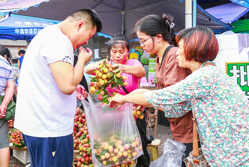 | 2022年7月17日,合江县马街荔枝交易市场上,市民在选购荔枝 |