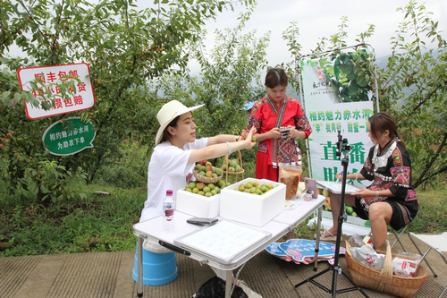 | 抖音主播在凤凰李种植基地卖力带货 |