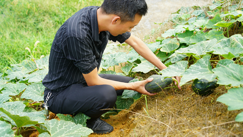 为什么会想到在甜橙基地套种南瓜?刘宗伟下足了功课。今年年初,刘宗伟前往贵州省铜仁市江口县的一个李子果园学习,该果园推行的“李子树+香芋南瓜”种植模式吸引了刘宗伟的注意,经过多方考察,刘宗伟内心便萌生种植“模板”的想法,决定将好的经验做法复制到自己的甜橙基地里,尝试“甜橙+香芋南瓜”。