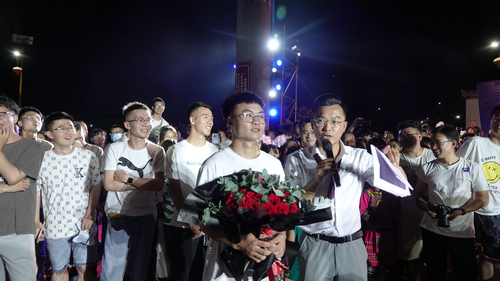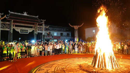 蒙面篝火晚会上,灯光璀璨,大家手拉着手,围绕着熊熊燃烧的篝火跳起苗家舞蹈,现场气氛十分热烈。最后,还进行“真情大告白”活动,让青年有爱大声说出来。