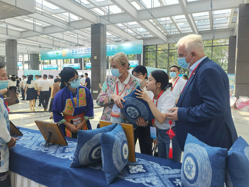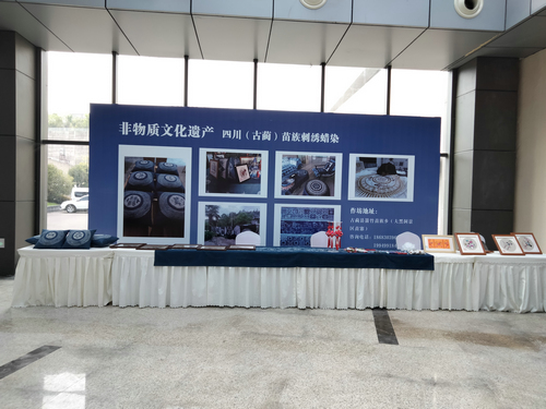 7月28日,古蔺县箭竹乡携苗族非遗文化文创产品:蜡染、刺绣40余件文创产品参加由泸州市人民政府主办的首届中外地理标志产品博览会,古蔺县箭竹苗族乡非遗文化文创作品亮相首届中外地理标志产品博览会,参展作品被中外嘉宾及领导“点赞”。