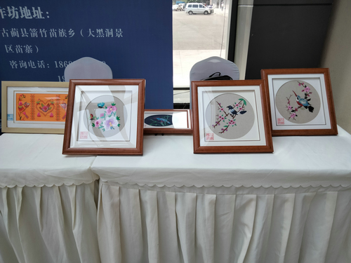 四川新闻网消息 这是我们箭竹苗族乡非遗文创产品:蜡染抱枕,刺绣香囊……”古蔺县箭竹苗族乡非遗文化传承人杨磊老师正细心地跟巡馆嘉宾及领导介绍古蔺县箭竹苗族乡非遗文化文创产品。