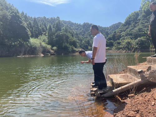 | 陈益良主任查看先滩镇宝龙坪水库水质 |
