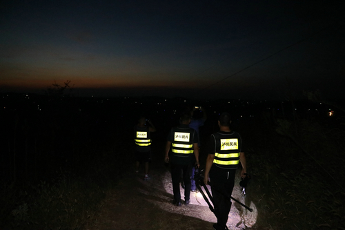 巡逻了两个多小时,巡逻队员们湿透了衣服,天色也逐渐暗下来,可巡山队员们却没有丝毫地松懈,打着手电筒仔细确认沿途有无安全隐患,检查“严禁用火”的宣传牌是否完好。“我们巡逻的目的就是排除安全隐患,如果发现小的火情,我们就要打早、打小、打了,如果有发现重大火情,我们就坚持‘三先四不打’的原则,及时上报指挥部。”巡逻队队员,雪骡村村委会副主任黄荣清告诉记者。