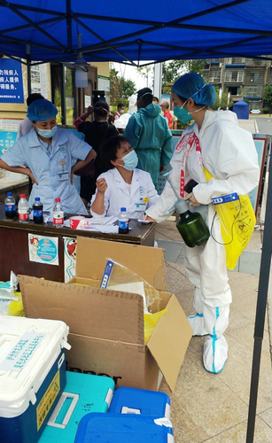 “李师傅,你赶快回去休息了,已经很晚啦!”8月31日23时45分,在鱼塘街道某核酸检测点,忙了一天的万顺叫车爱心司机李光银完成运输任务后,又拿起消毒设备投入消杀工作中,回家时已是凌晨1点过。还有队友杨红、喻永会、马世芬、张林等人都是在夜深人静之时才得以回家作短暂的休息。