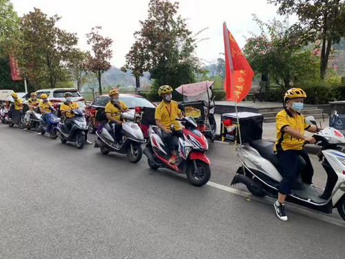 四川新闻网消息 “市民朋友们,符阳街道将于9月4日开展第三轮全员核酸检测,集中采样时间为上午6点至中午12点,请大家互相转告,积极参与……”,这几日,美团外卖的骑手们化身疫情防控宣传员,背着小喇叭穿梭在大街小巷,为全员核酸检测进行义务宣传。