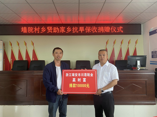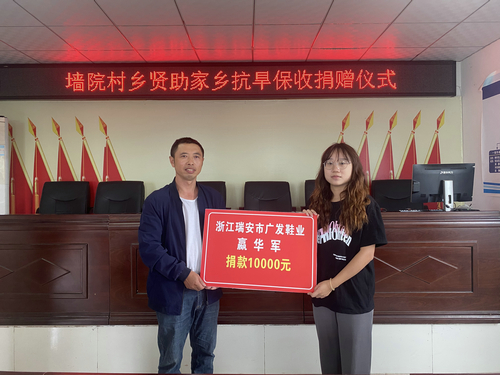 “我们非常感谢李先华会长对墙院村的关心,冒着40多度的高温在古蔺为墙院村挑选物资,也感谢嬴纯、嬴华军、嬴时富等3位乡贤对家乡的付出,我们保证公开透明的使用好这批防疫、抗旱物资”墙院村支书在捐赠仪式上表态。
