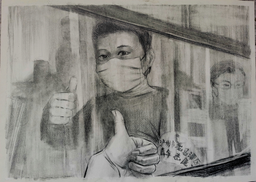“大家都在为抗疫贡献自己的力量,我也希望生活能早日回到正常的轨迹,我打算在开学第一堂美术课给我的学生们分享我的这幅作品,给孩子们将这作品背后的故事,让孩子们能明白,有很多很多的人,在我们看不见的角落,默默守护着我们。”永寿学校教师刘丽表示。