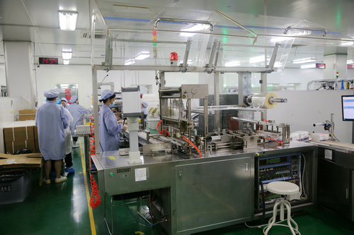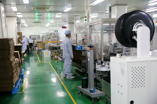 四川新闻网消息 9月5日,记者在四川绿叶制药股份有限公司的生产车间里看到,戴着口罩的工人们正在加紧生产,流水线上,机器轰鸣不断,一盒盒药品随着机器的运转完成装箱,车间生产井然有序。