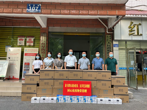 “一提、两提·····100提,都卸这里了!”民革龙马潭支部党员们一边清点物资,一边帮着把物资摆放在红星街道办事处大门口,这里已经整整齐齐摆放了100提牛奶、100提酸奶。
