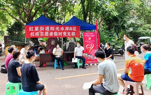 在临时党支部的统领下,200多人的队伍被分为11个小组,与区级部门、街道、社区联动,全方位、立体化、多平台开展志愿服务,共同构建起疫情防控的“双圈”。外圈由区级包保部门(区委统战部、区农业农村局)、红星街道组成的志愿队负责物资购买、签收和配送到大门口,并协调各方、守牢卡口,内圈里物资配送到户、核酸检测上门服务等各项工作由临时党支部全面负责抓落实,24小时轮班值守、在线服务。