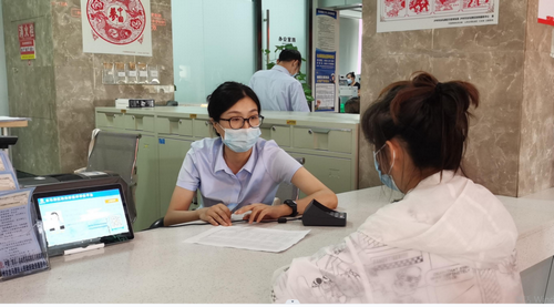 | 龙马潭区人社局工作人员乔白如正在为群众办理社保卡相关业务 |
