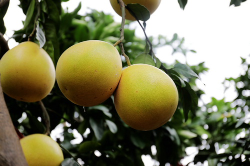 据悉,三红蜜柚采用套袋技术,单果重1.5千克左右,肉质细嫩,酸甜可口,受到广大市民的喜爱。