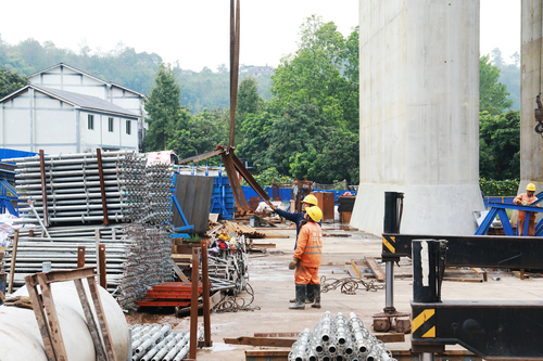 四川新闻网消息 9月28日,在隆黄铁路(隆昌至叙永段)泸州沱江铁路特大桥项目建设现场,处处响动着铿锵的作业声,现场一派如火如荼的施工场景,整个项目紧张有序地推进。