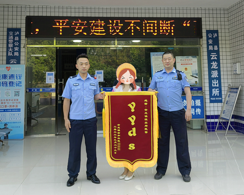 四川新闻网消息 近日,邓女士带着“YYDS”(永远的神)的锦旗来到泸县公安局云龙派出所,感谢派出所快速破案,挽回财物损失。并和破案民警全影留念。相片中的民警那满足憨厚的笑容让人印象深刻。