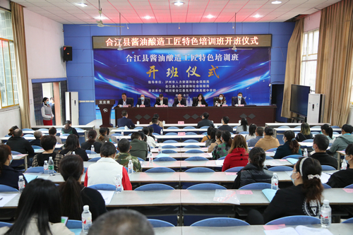 四川新闻网消息 10月26日,合江县酱油酿造工匠特色培训班。泸州市人力资源社会保障局副局长王平,县委常委、副县长艾青出席开班仪式。