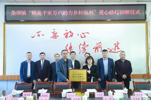 捐赠仪式上,浙江宁波声科电子有限公司负责人于广、江德芳夫妇向尧坝镇捐赠了52盏路灯,价值约7万余元,惠及白村、团结村800余户村民。尧坝镇党委书记杨波代表尧坝镇党委政府,向浙江宁波声科电子有限公司赠送牌匾,并致以衷心的感谢。