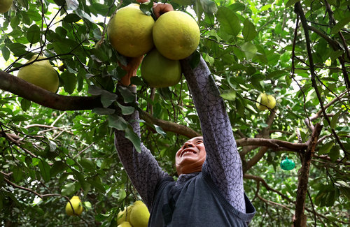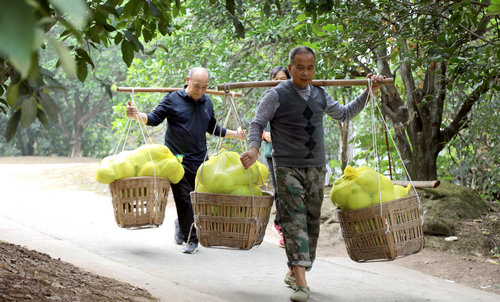 四川新闻网消息 初冬时节,泸州市合江县三大特色产业之一的真龙柚迎来上市,在白米镇碾子榜村,当地党员干部帮着村民一道采摘销售真龙柚,美丽乡村一片丰收忙碌的景象。近年来,泸州市合江县大力推进真龙柚规模化、科学化发展,种植面积达30.8万亩,产值超10亿元。(供稿:合江县宣传部 卢海军)