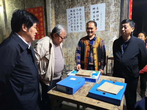 在水潦彝族乡大洞土司庄园(余健光故居),吉狄马加一行仔细查看土司遗留的园舍,深入了解彝族毕摩经书等古彝文古籍。吉狄马加指出,无论是在历史沿革方面,还是独特的建造风格方面,庄园都具有很高的历史地位和保护价值,这对于彝族文化产业建设提供了宝贵的历史实物鉴证,要加大对庄园和彝文古籍的保护力度,实现民族文化的有效传承和保护。(供稿:叙永县委统战部)